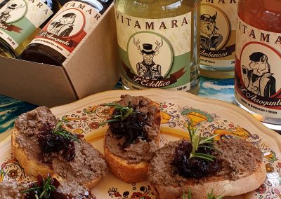 While you spend your holiday, you can book an original food pairing experience during which you will taste the 3 Vitamara spirits, the Arrogante based on rosemary and mint, the Ambitious based on bay leaves and the Eclectic based on celery in combination with various finger food from the culinary tradition of our region.